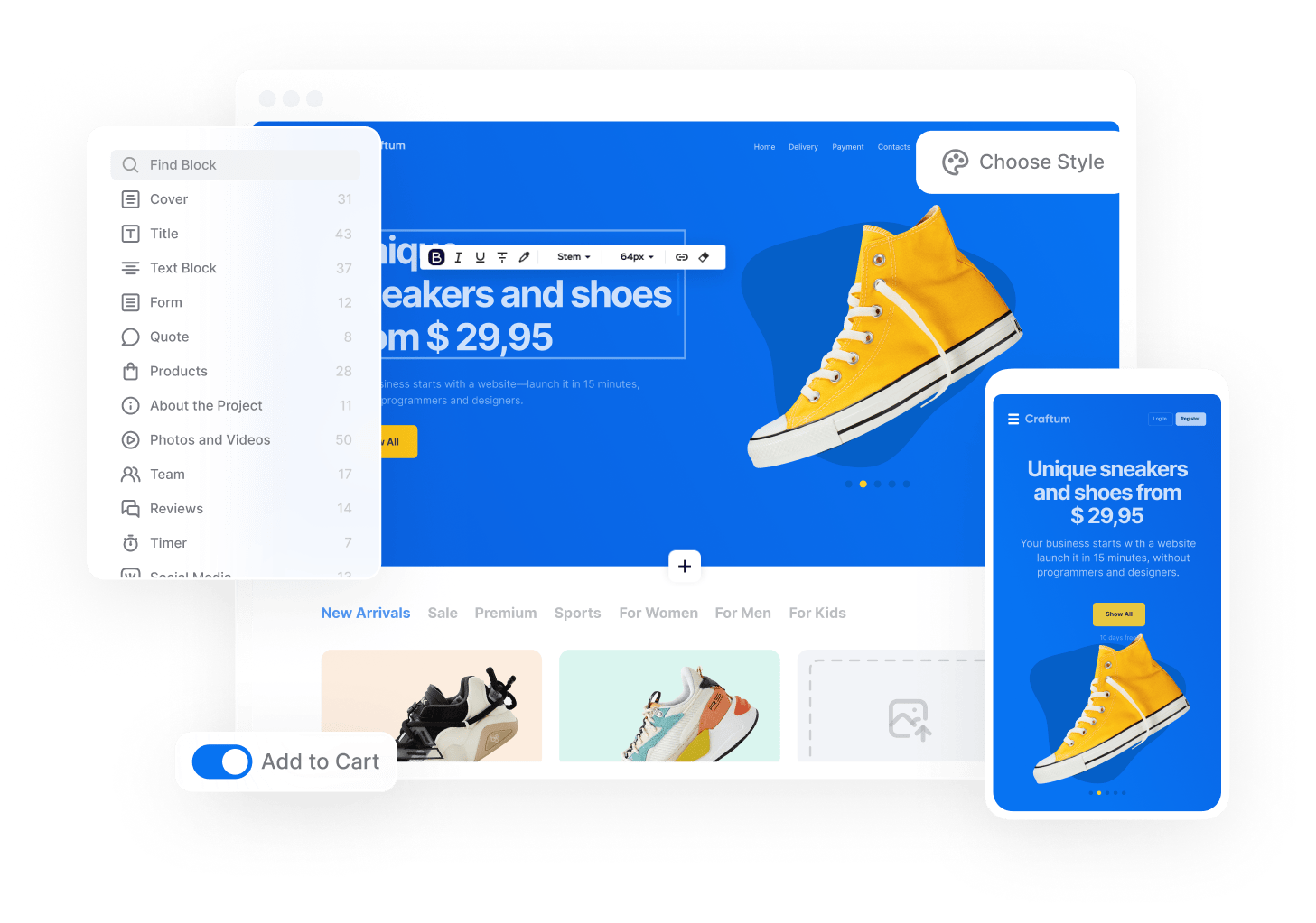 A website is your business’s passport. With Craftum, creating a site is easier than filling out a social media profile and sharing is even simpler than handing out a business card.